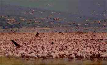 concentrations of pink flamingos that can gather here, as well as the remarkable