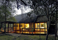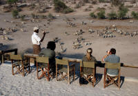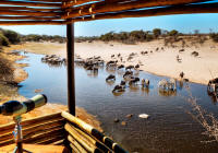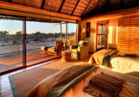 the dry Boteti riverbed. The main lodge overlooks a water hole