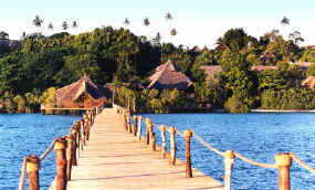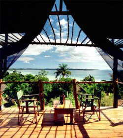 or on a small hill. All are built under "makuti" thatch, furnished with
