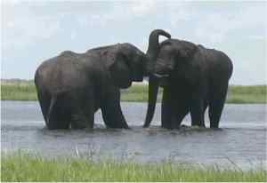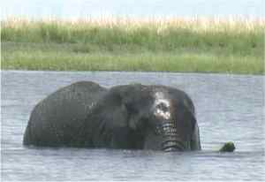 The variety of wildlife easily seen during a few hour boat-safari is stunning. This part of Chobe is famous for large herds of elephant which can be seen coming down ot the river to drink - and to play. They walk right into the river and play about like children in a swimming pool, submerging completely except for their trunks that they will use to breath. They will push and shove and climb over each other and spray each other with water. Buffalo are also seen here in abundance, and the location is infested with pods of hippo, as well as a great variety of antelope, such as phuku, kudu, red lechwe and waterbuck.