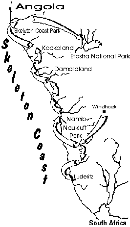 of the Orange River in South Africa, includes the whole Namibian coastline,