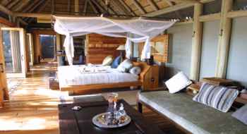 plunge pool. The Vumbura Reserve offers both land and water activities in a park that has a wonderful variety of habitats and a great diversity of wildlife. The reserve offers an enormous traversing area of close on 130,000 acres. The main activity at Vumbura Plains is game viewing in wonderful and varied countryside. Open 4x4 Land Rovers allow close proximity to animals in the savannah and forested areas. The Vumbura area is possibly the only area in the Okavango where one can see Red Lechwe (an animal that inhabits the fringes of the waterways) and a Sable antelope (an animal that enjoys the dry countryside) on the same game drive. Add in Lion, Leopard, Elephant, cheetah and Buffalo along with all the plains animals and one has an excellent all round wildlife experience in a remote and private part of the Okavango. Birding too is great with large varieties and quantities. Walks, mekoro’s and boating give Vumbura's guests the opportunity to enjoy Africa from a different perspective.