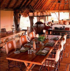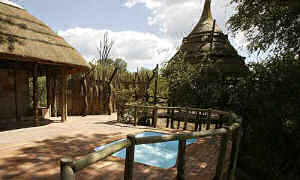 woodland and the dry Savuti Channel. The camp overlooks the Kings Pool