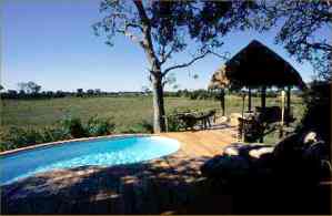 bedded luxury tented camp situated in a private reserve to the west of the Moremi Game Reserve in the Okavango Delta. The camp is located in a